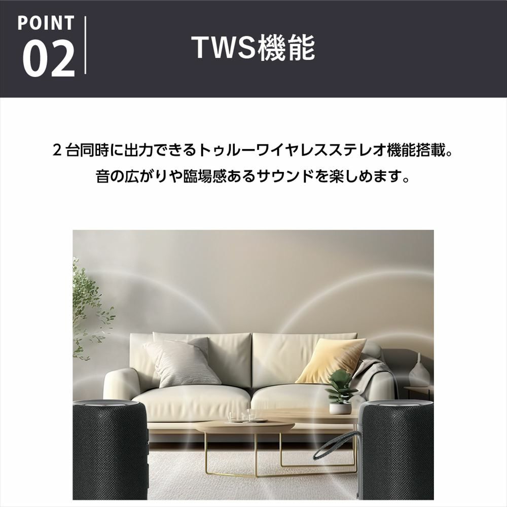 TWS&最大出力20Wの臨場感あるサウンド。分離して自由に配置できるスピーカー。