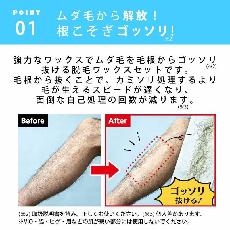 強力なワックスでムダ毛を毛根からゴッソリ(※2)抜くことができる脱毛ワックスセットです。