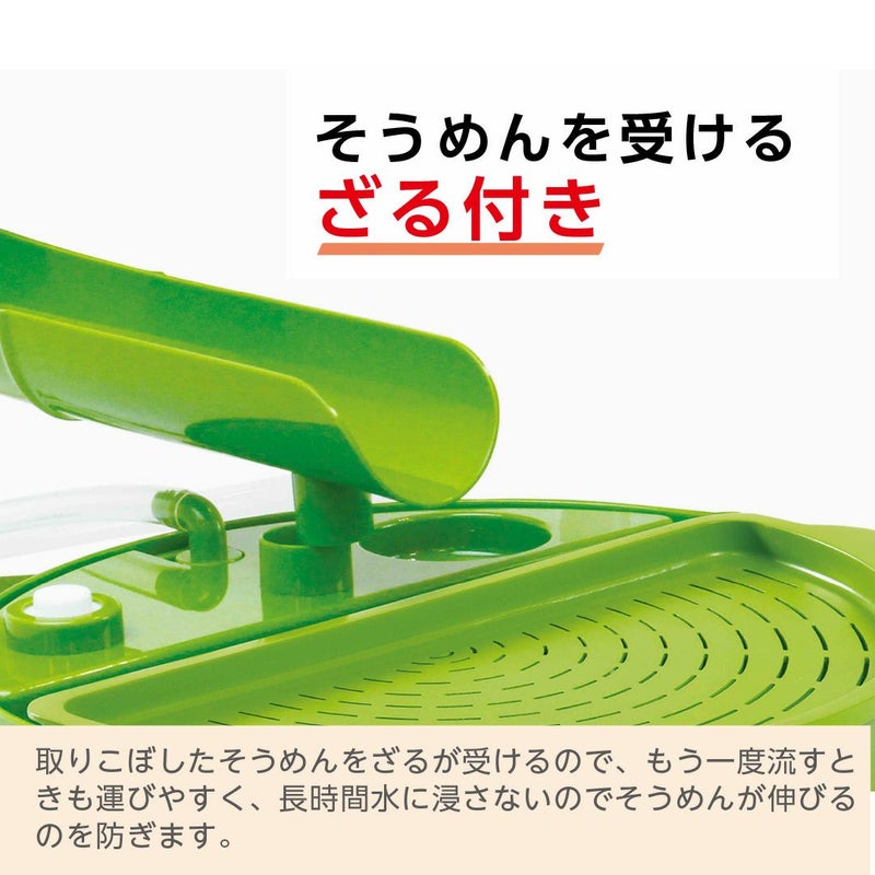 取りこぼしたそうめんをざるが受けるので、もう一度流すときも運びやすく、長時間水に浸さないのでそうめんが伸びるのを防ぎます。