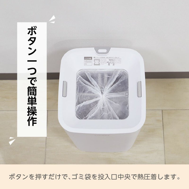 ✅ゴミ袋を自動で密閉ボタンを押すだけで投入口中央で熱圧着。ゴミ袋もそのまま新しいものに自動で交換してくれます。✅容量は16L16Lの小ぶりなゴミ箱なのでキッチンや洗面所などの小さいスペースにも設置しやすいです。✅USB充電式で置く場所を選ばない1回の充電で約45日間使用が可能です。✅カートリッジ1つで約25回分交換が可能です。✅おむつやペットシーツなどのにおいの気になるものも密封して捨てることができます