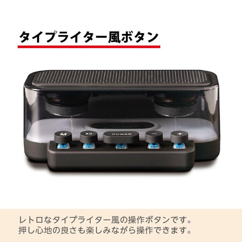 タイプライター風ボタンがオシャレなワイヤレススピーカー。