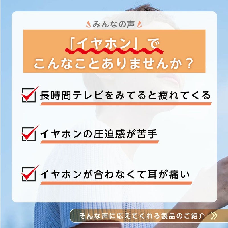 耳掛け式で圧迫感や閉鎖感がなく、快適に装着できます。長時間のテレビ視聴時でも、耳への負担を軽減します。