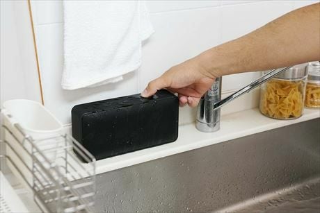 防水仕様で水気のある場所でも音楽を楽しめます。