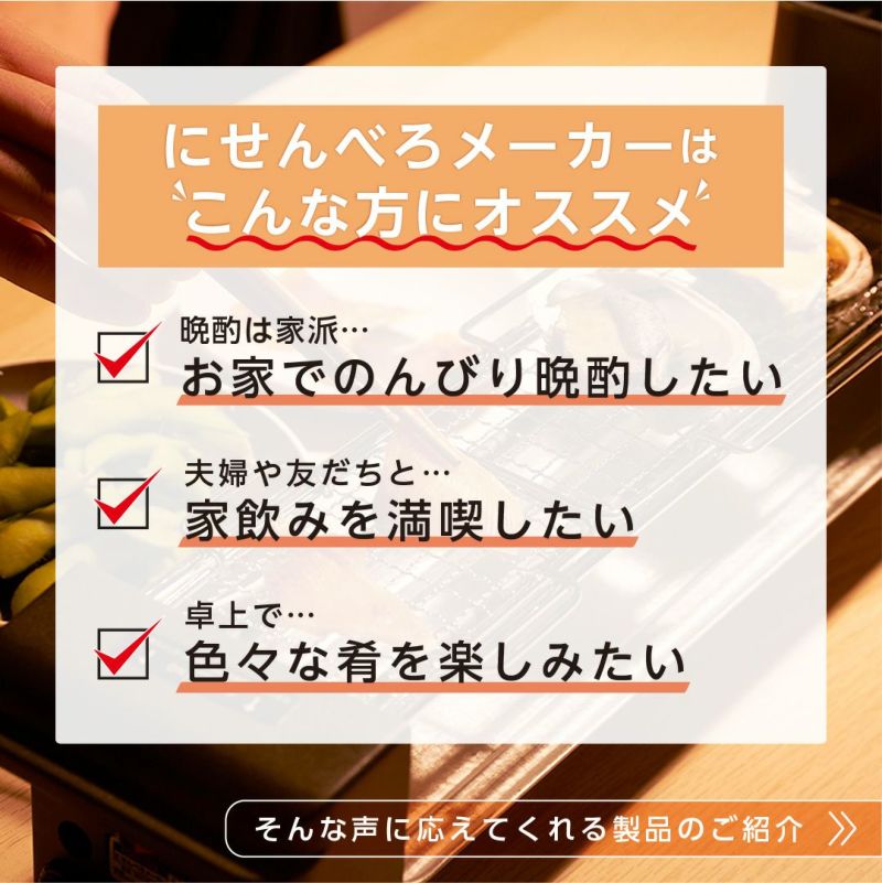 コンセントにつなぐだけで、いつでもアツアツな酒のアテを味わえます。