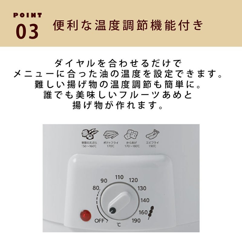 メニューに合わせて油の温度を設定できます。難しい揚げ物の温度調節も簡単に。