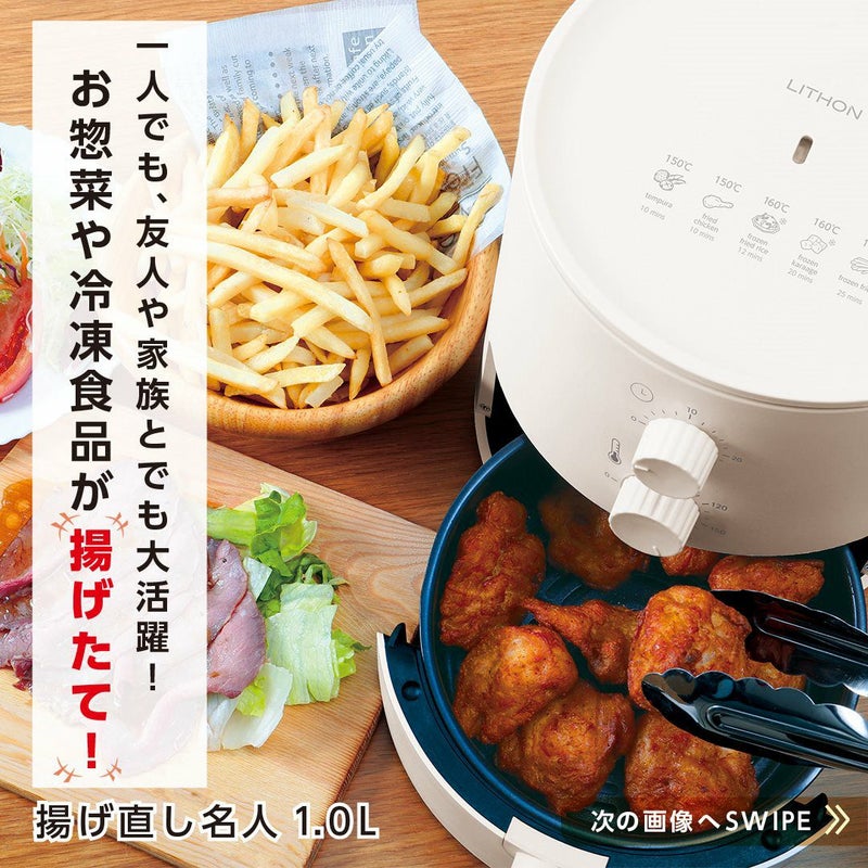 惣菜・冷凍食品を油を使わずまるで揚げたて。1.0Lまで容量アップ。