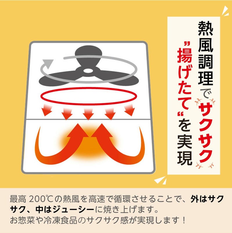 お惣菜やファーストフード、冷凍食品の揚げもの料理を、お家で簡単に美味しく仕上げます。