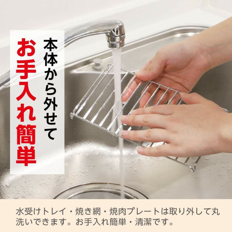 水受けトレイ・焼き網・焼肉プレートは取り外して丸洗いできお手入れ簡単・清潔