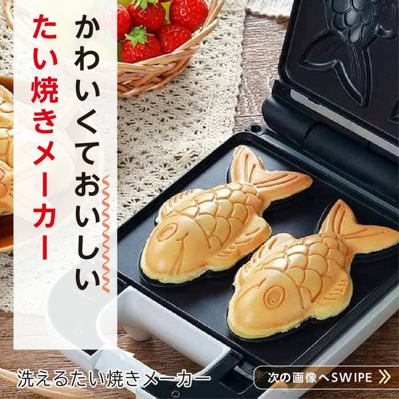 可愛くて美味しいたい焼きが簡単に焼ける。着脱式プレートでお手入れ簡単。