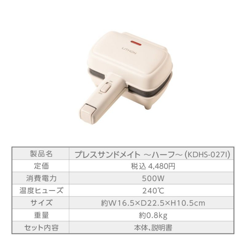 大きすぎずちょうどいい!食パン1枚で作れるハーフホットサンドメーカー