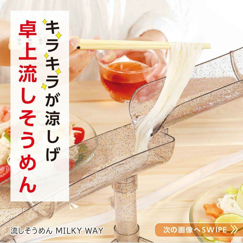 きらきらラメが涼しげでかわいい。上から流れるタイプの卓上流しそうめん器