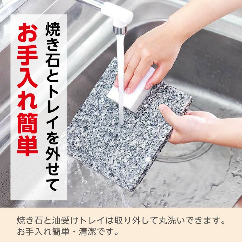 焼き石プレートとトレイは取り外して水洗いできます。