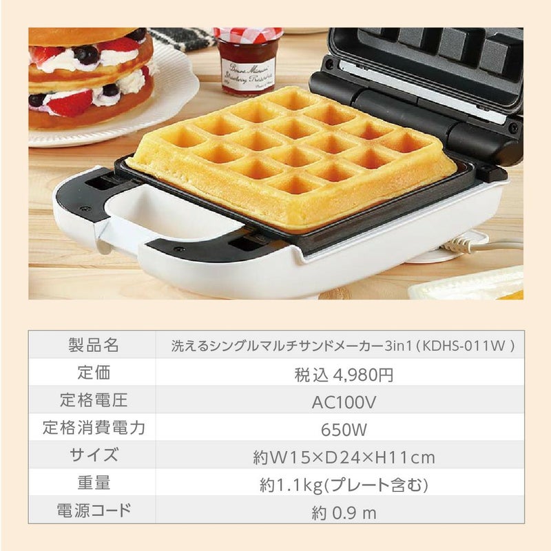 厚焼きホットサンド・ワッフル・パンケーキをこれ一台で。1人分を手軽に作れるホットサンドメーカー。