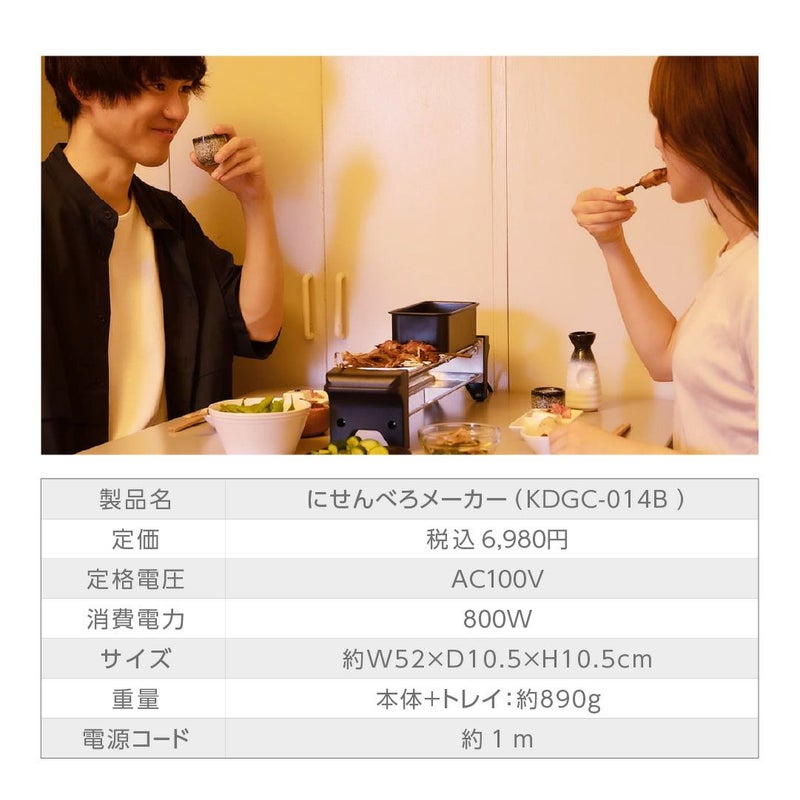 ヒーターの部分の長さが2倍の約40cmのロングサイズになり、「せんべろではつまみが足りない」「2人でも楽しみたい」という方でも大満足の卓上家電に進化しました。