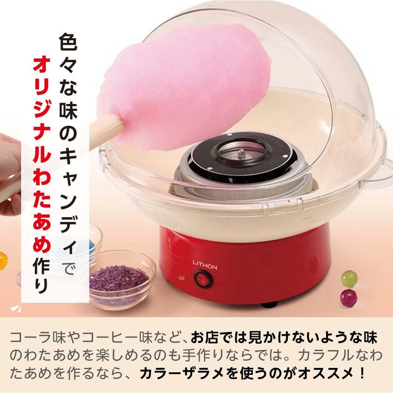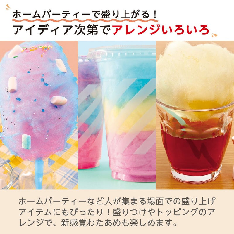 色々な味や色のキャンディーを入れれば自分だけのオリジナルわたあめが楽しめます。