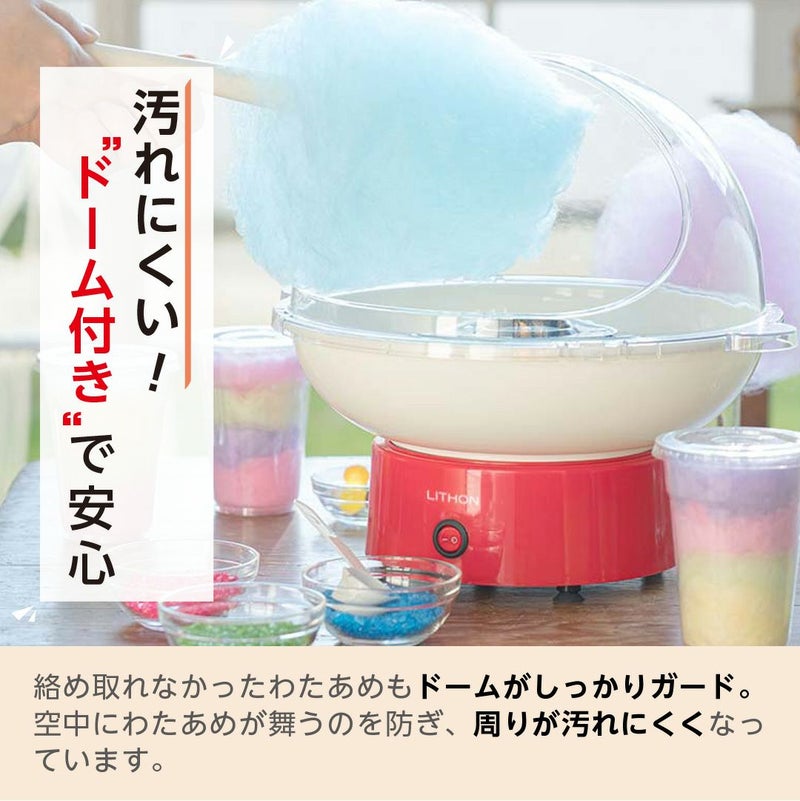 あめ玉やザラメでわたあめが作れる。絡め取れなかったわたあめもドームがガード
