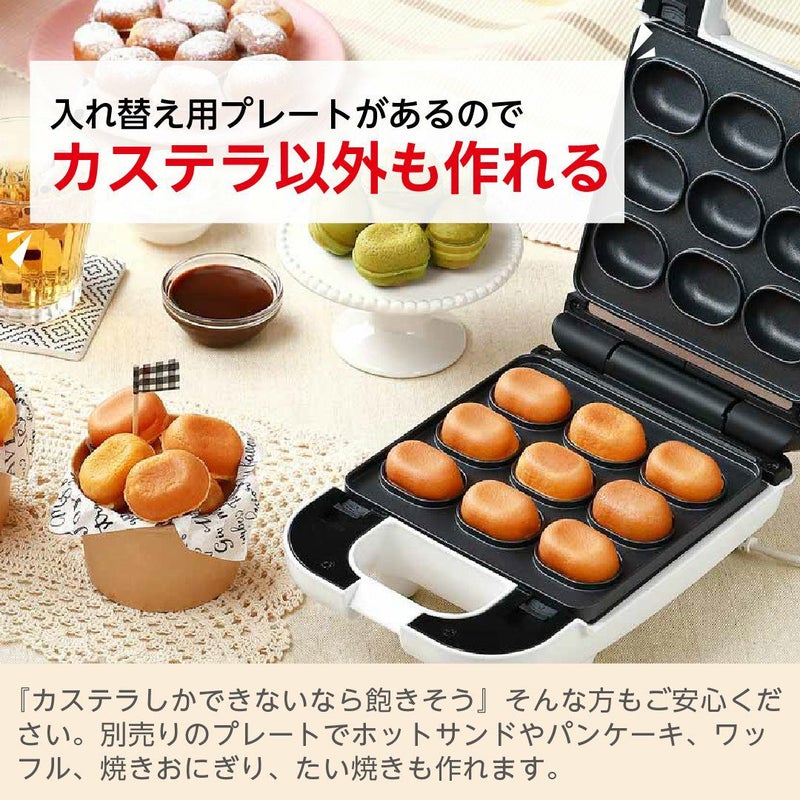 美味しいベビーカステラが1度に9個焼ける。着脱式プレートでお手入れ簡単。