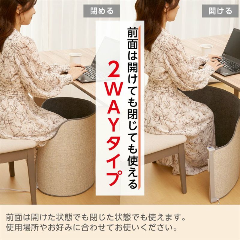 広い加熱面積のパネルヒーターが全方位から暖かく包み込み、冷えた足元を温めます。