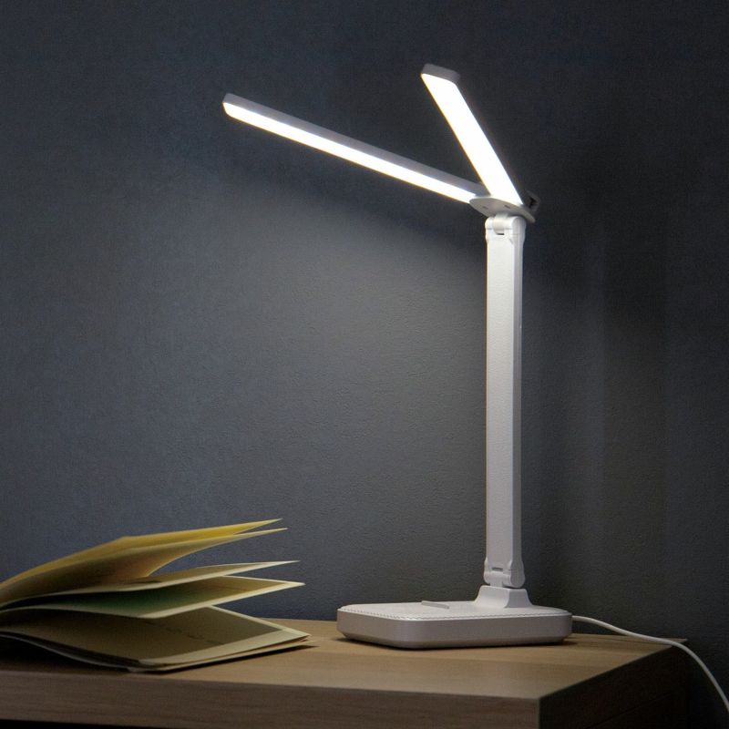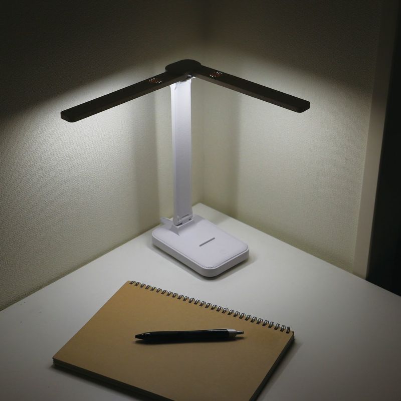 可動式の2つのライトヘッドが特徴の革新的なUSBデスクライトです。2つのライトヘッドはそれぞれ独立して角度調整が可能。L字型のデスクの角に沿って配置したり、手元と壁面を同時に照らしたり、読書と書き物を同時に行う際にそれぞれ最適な光を当てたりと、これまでのデスクライトでは難しかった多様な使い方が可能です。