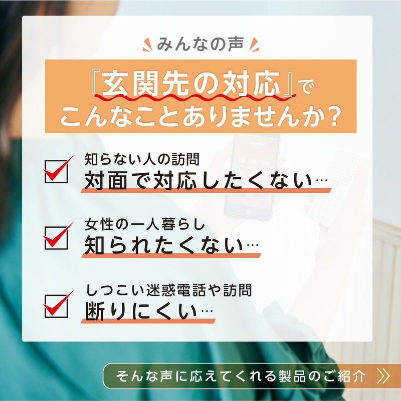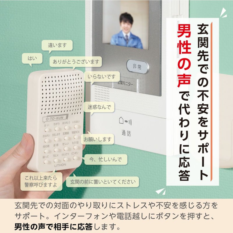 あなたの代わりに訪問者に男性の声で応答してくれる。玄関先での対面によるトラブルや不安を防ぐ便利グッズ。