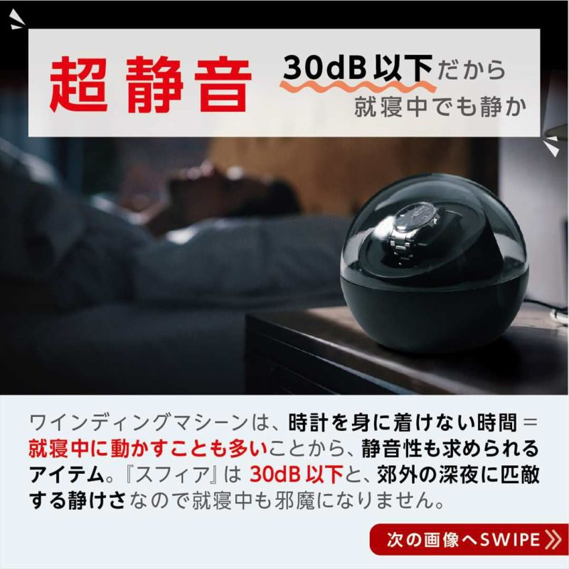 自動巻きの腕時計は、腕に装着して過ごして(動いて)いると、どの時計も同じようにゼンマイを巻き上げてくれますが、ご存じのように、時計によって巻き上る回転方向が異なります。様々な時計に対応できるよう、『スフィア』には4つのワインディングモードを搭載しました。