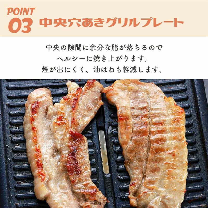 中央の隙間に余分な脂が落ちるのでヘルシーに焼き上がります。