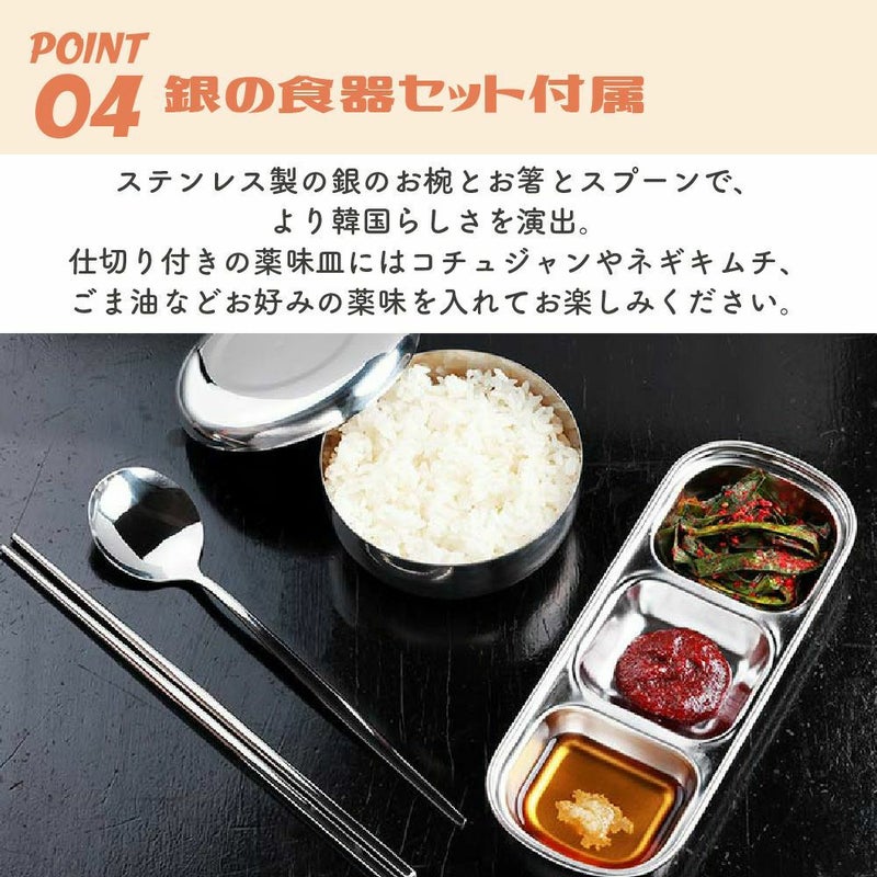 付属の銀食器を使えば、自宅にいながら韓国気分を味わえます。