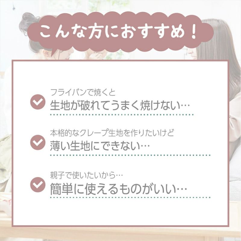 い本体は約750gと軽く、直径も20cmとコンパクトなためお子様にも調理を楽しんでいただきやすいクレープメーカーです。