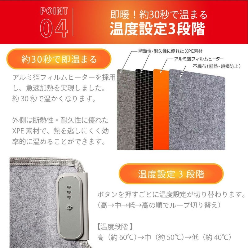 電気代が高くなりやすい冬の時期に、少ない電力で効率的に足元を温めることができます。