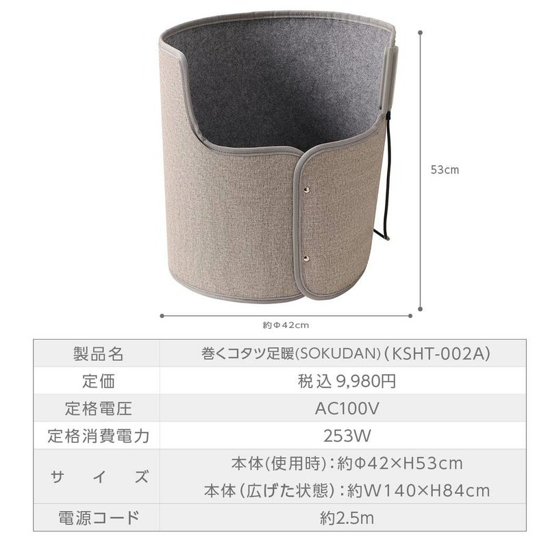足元・即・暖かくなる!360°全方位から加熱する巻くタイプのパネルヒーター