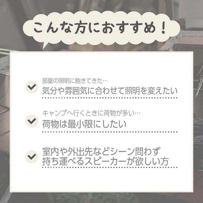 リビングやアウトドアに。"インテリア照明"としても使えるスピーカー。