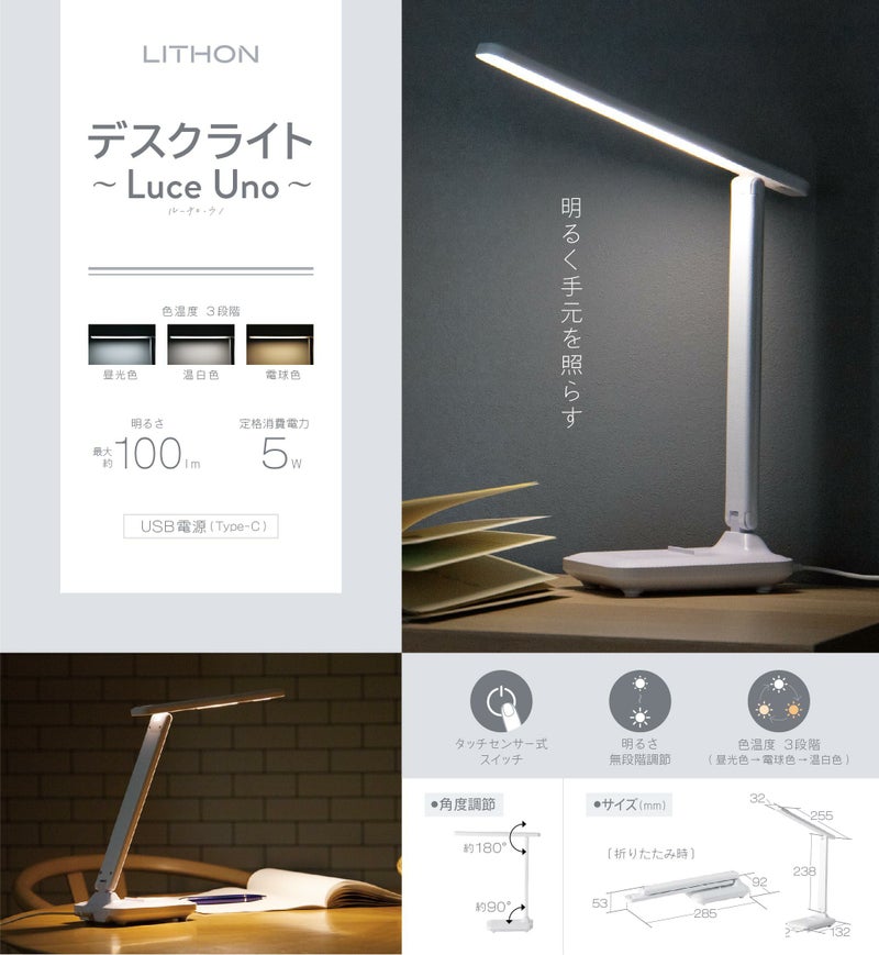 コンパクトで機能的なデスクライトです。