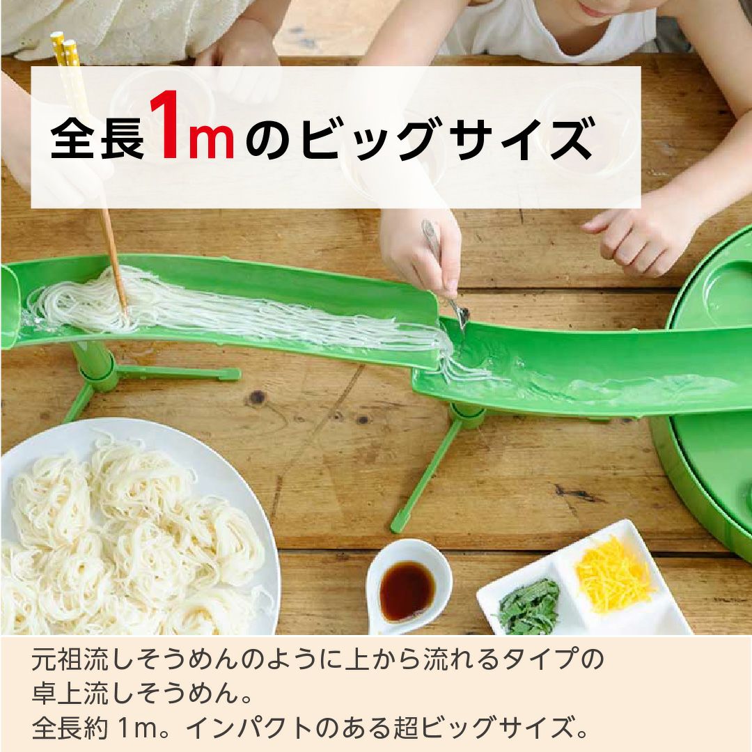 全長約1m。卓上流しそうめん器。受けるざる付き。