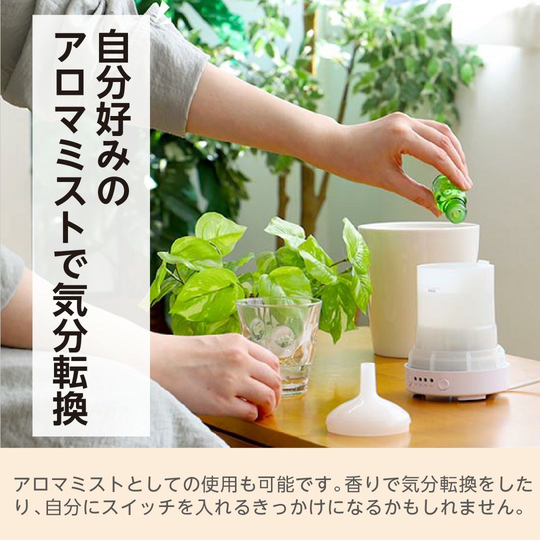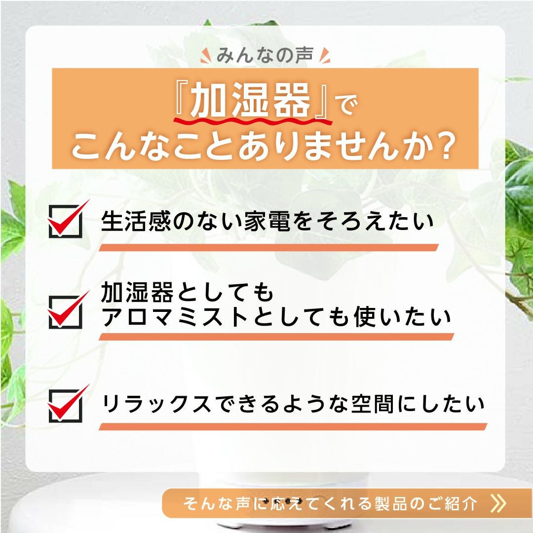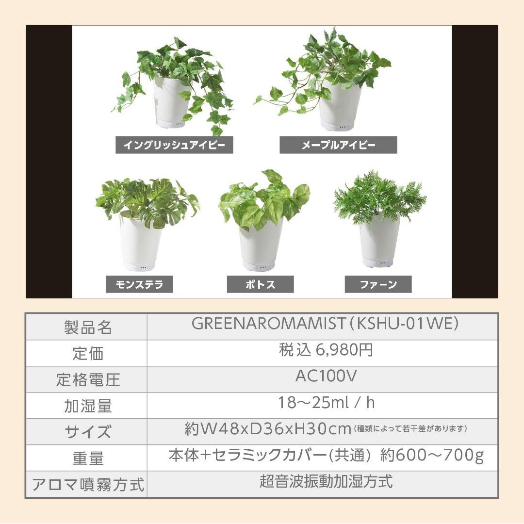 観葉植物からミストが噴き出すグリーンアロマミスト